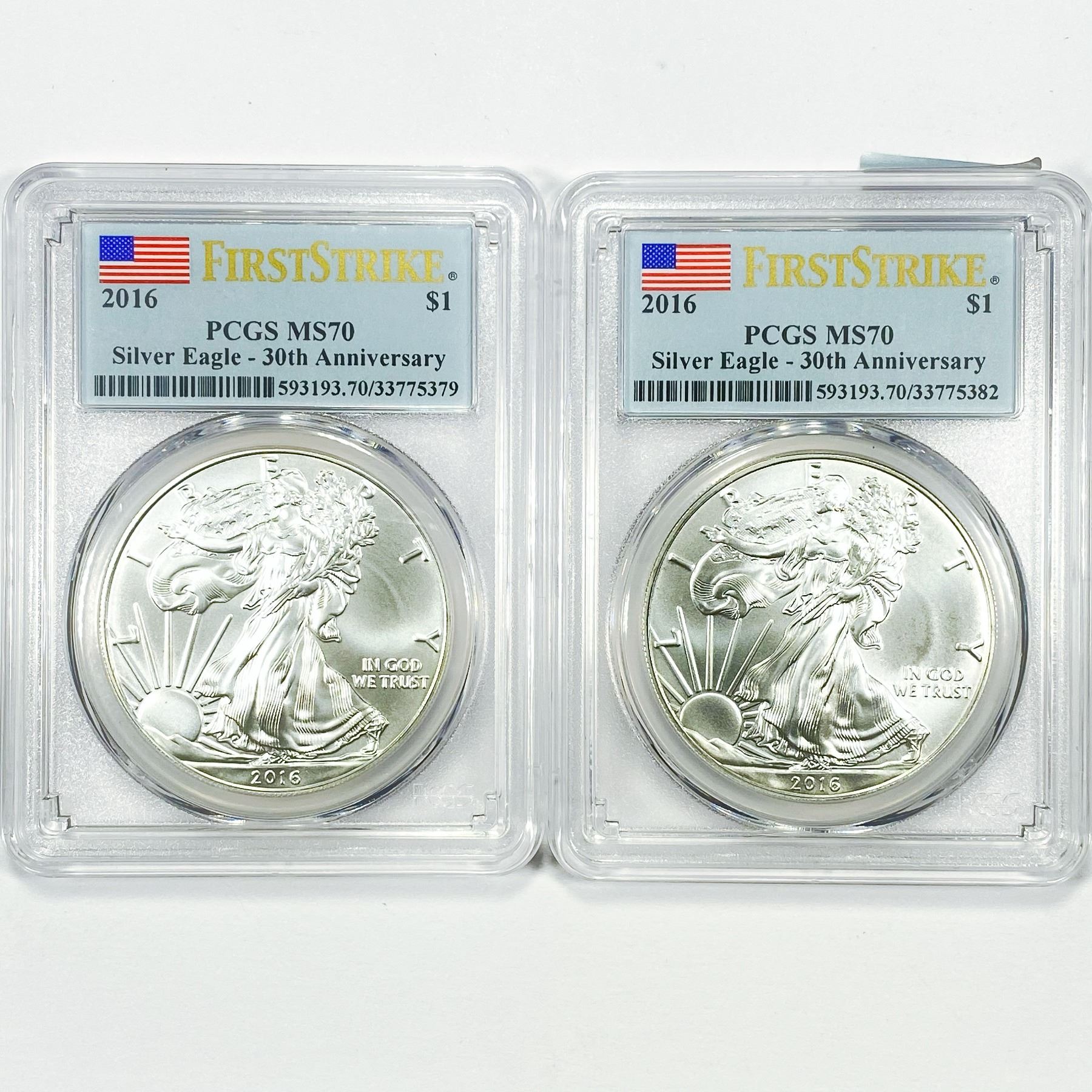2016 Silver Eagle Dollar Set of 2 PCGS - MS70
