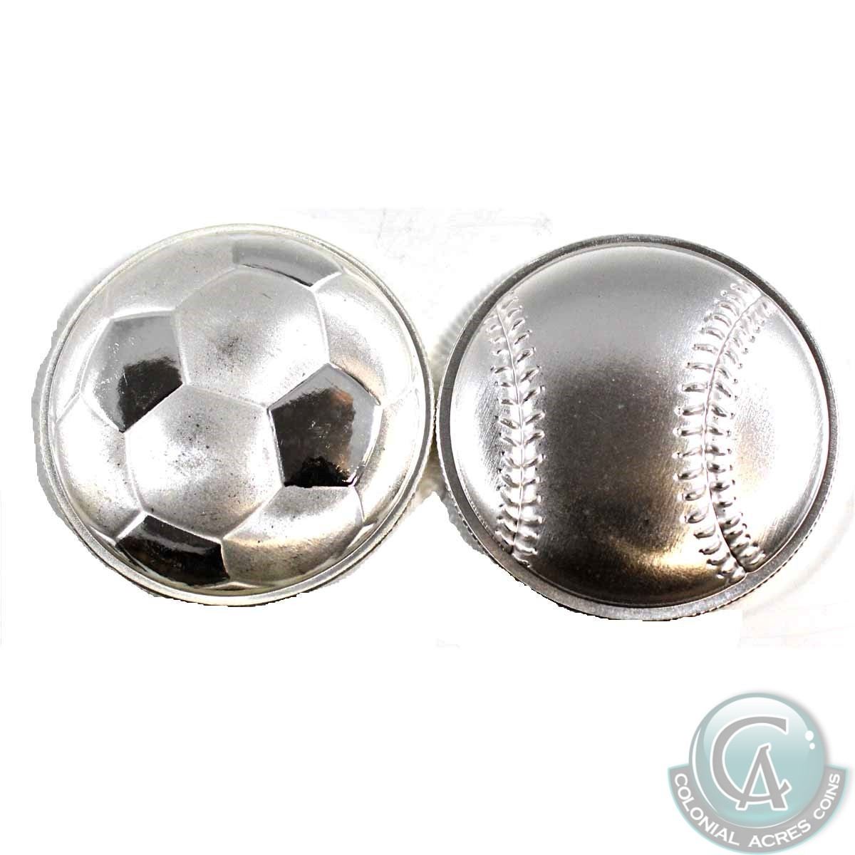 2016 Soccer & 2017 Basketball Monarch 1oz 3D Fine Silver Rounds (Tax Exempt). Please note coins may have light toning or marks. 2pcs