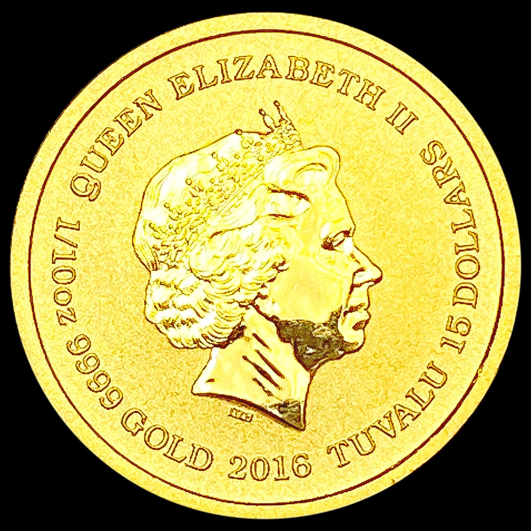 2016 Tuvalu 1/10oz Gold $15 GEM PROOF