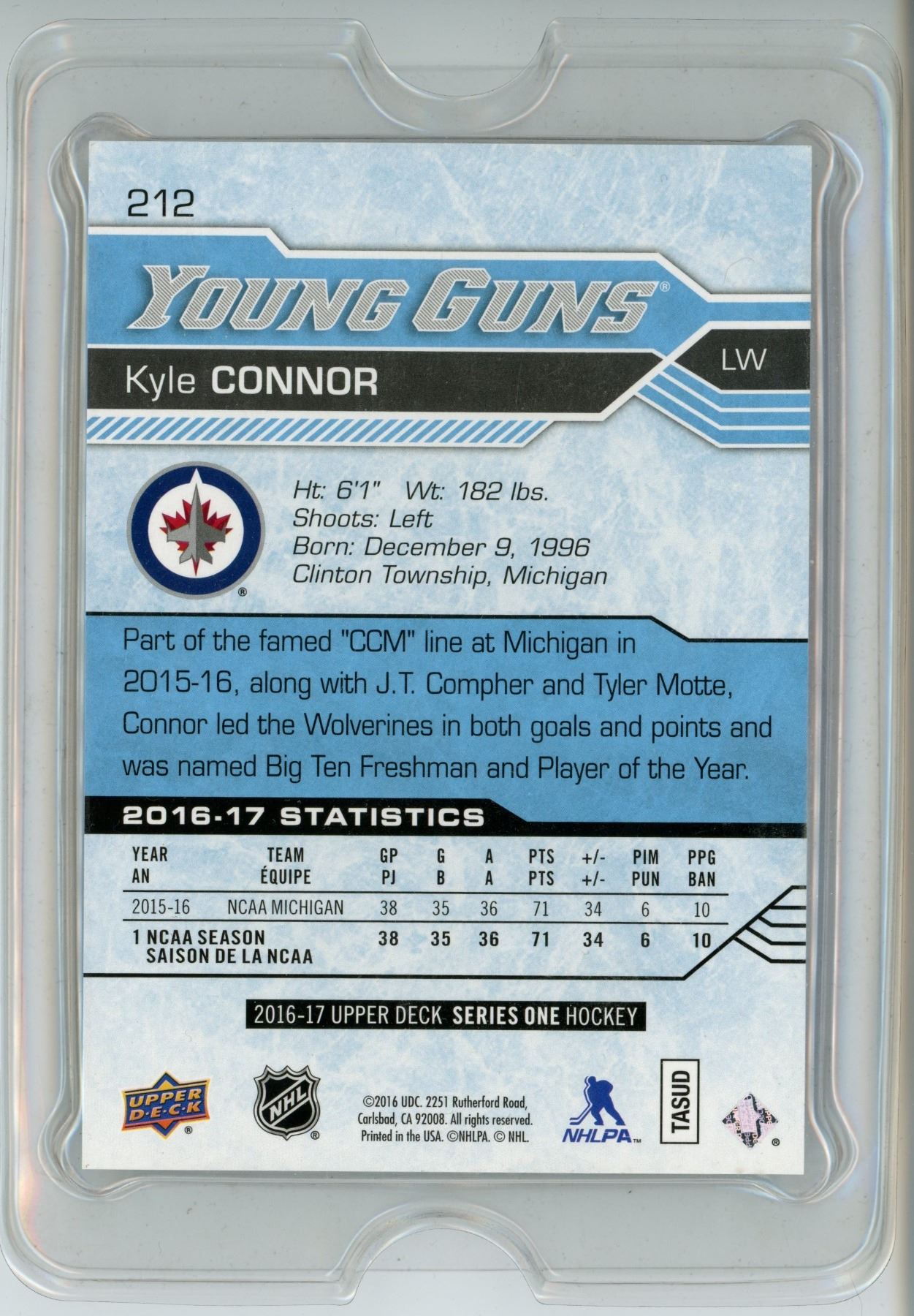 2016 UD, Kyle Connor - Young Guns, oversized NHL card #212