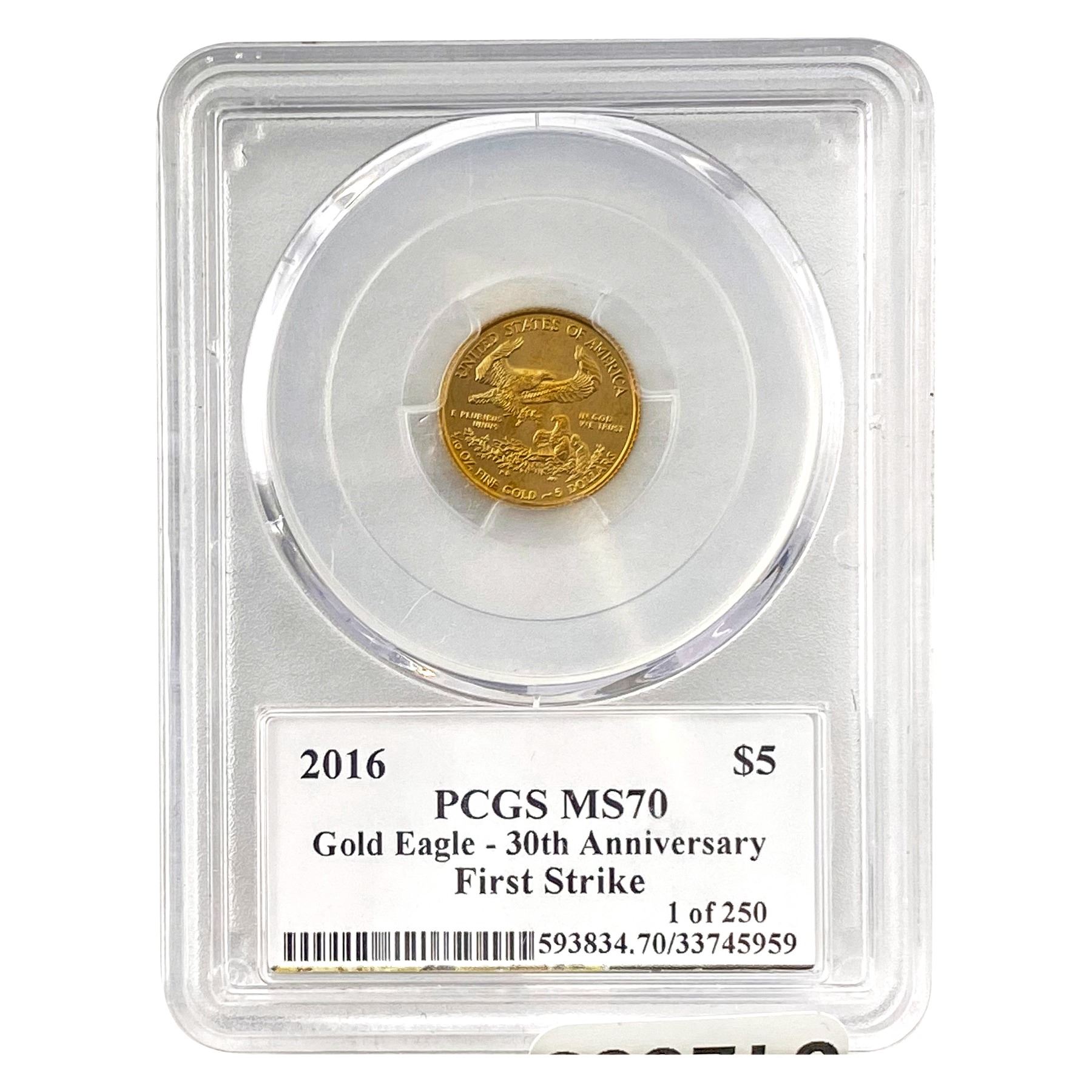 2016 US 1/10oz Gold Eagle; 30th Anniv. 1st Strike PCGS MS70