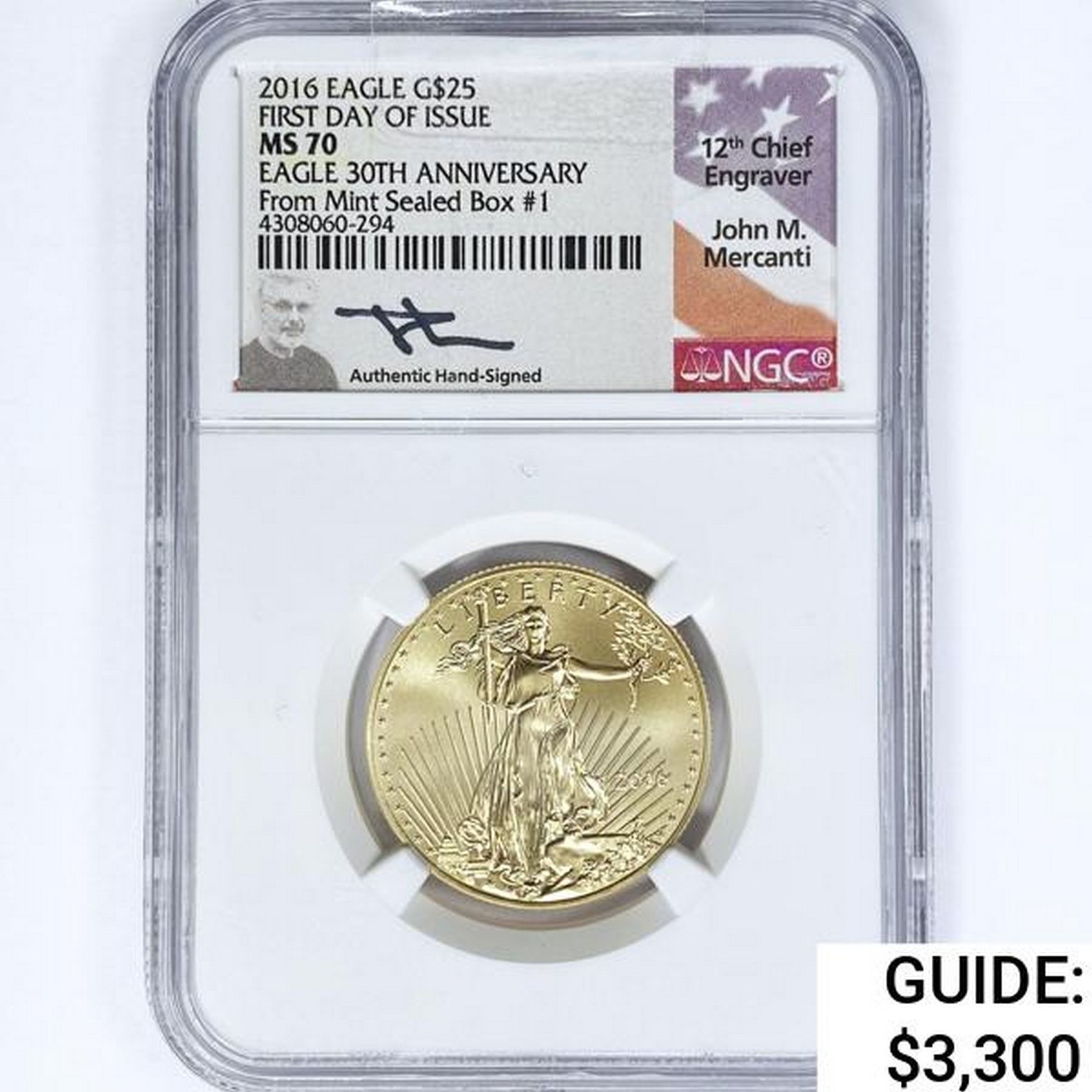 2016 US 1/2oz Gold $25 Eagle NGC MS70 1st Issue