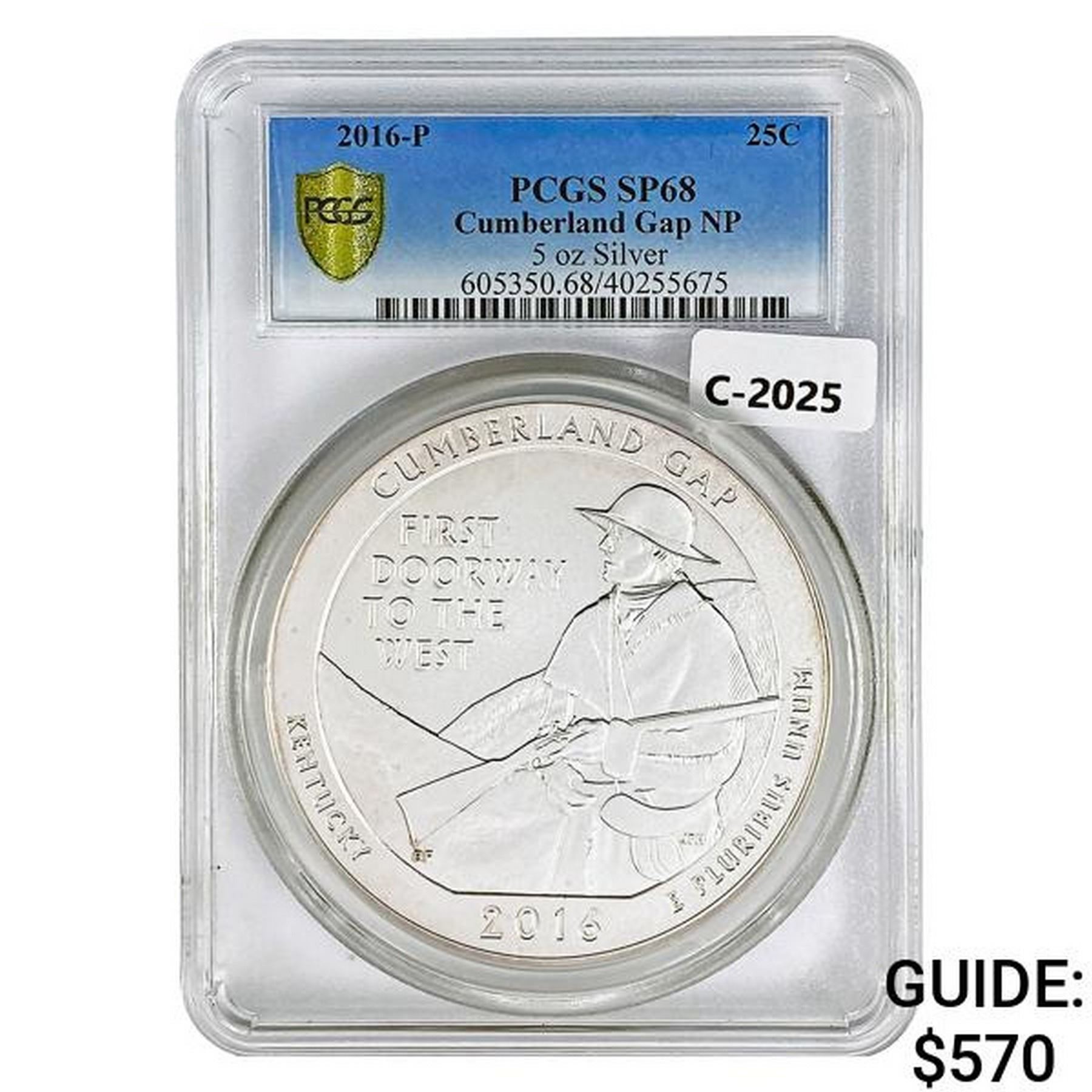2016 US 5oz Silver Cumberland Gap Round PCGS SP68