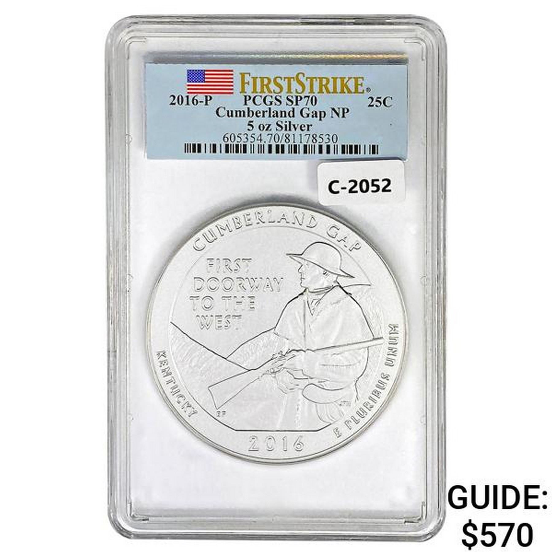 2016 US 5oz Silver Cumberland Gap Round PCGS SP70