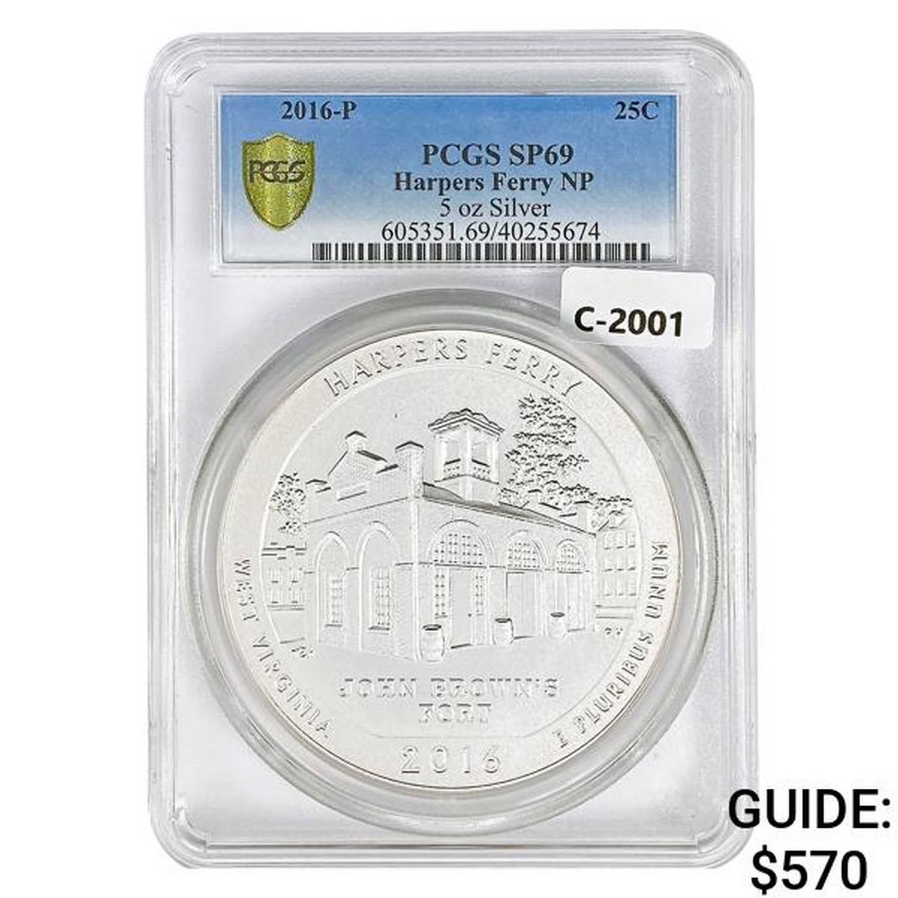 2016 US 5oz Silver Harpers Ferry Round PCGS SP69