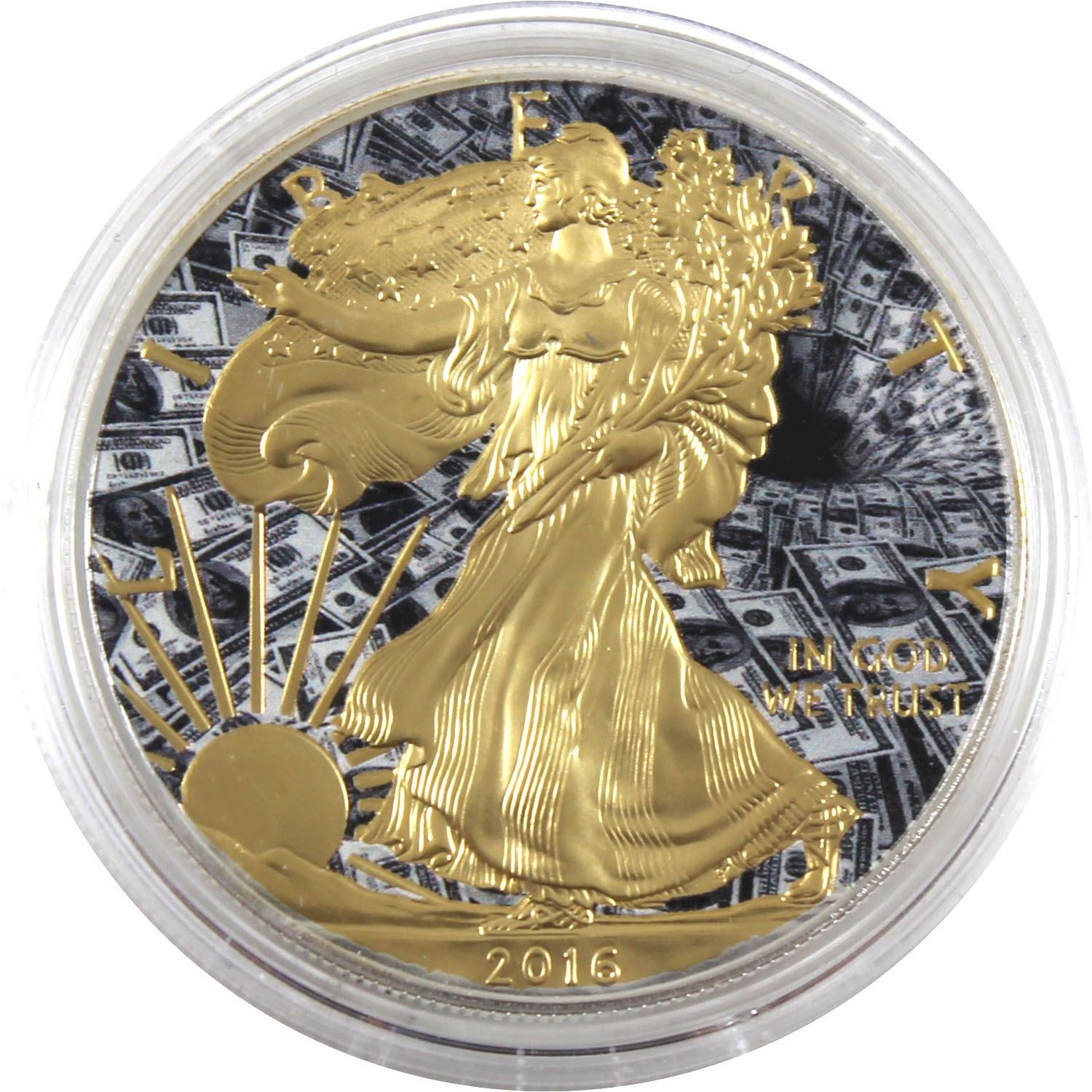 2016 USA 1oz '$100 Bills' .999 Fine Silver Coloured Eagle in Capsule (TAX Exempt).