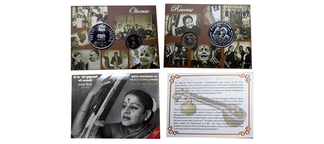 2016 Uncirculated Set, Birth Centenary of Dr. M.S. Subbulakshmi, set of 2, Rupees 10 and 100, Hydera