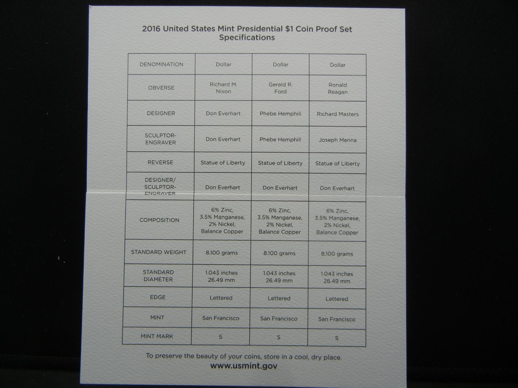 2016 United States Mint Presidential $1 Three Coin Proof Set. Nixon Ford Reagan.