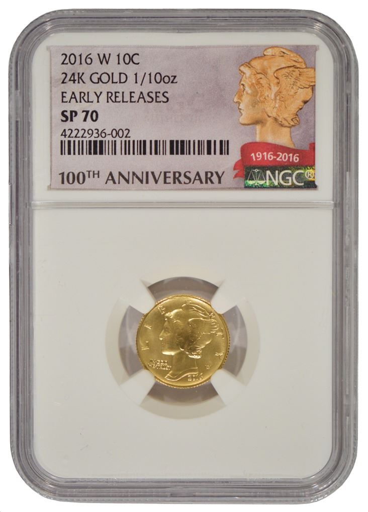 One 2016-W 1/10 oz Mercury Dime NGC SP70.