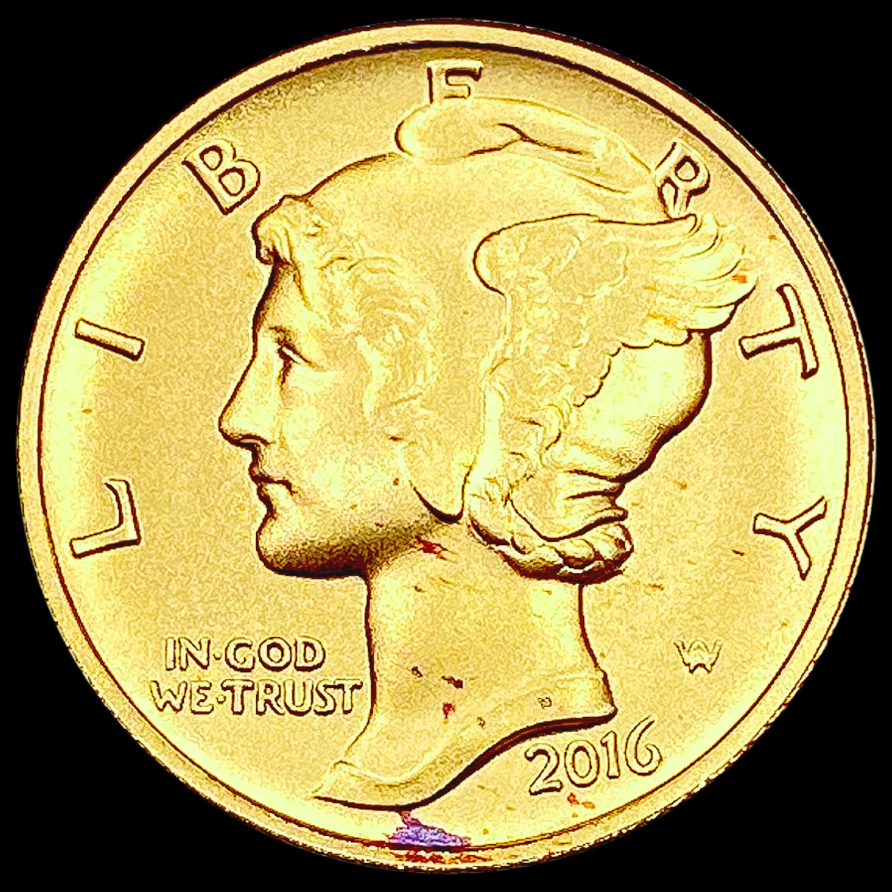 2016-W 1/10th oz Gold Mercury Dime SUPERB GEM BU