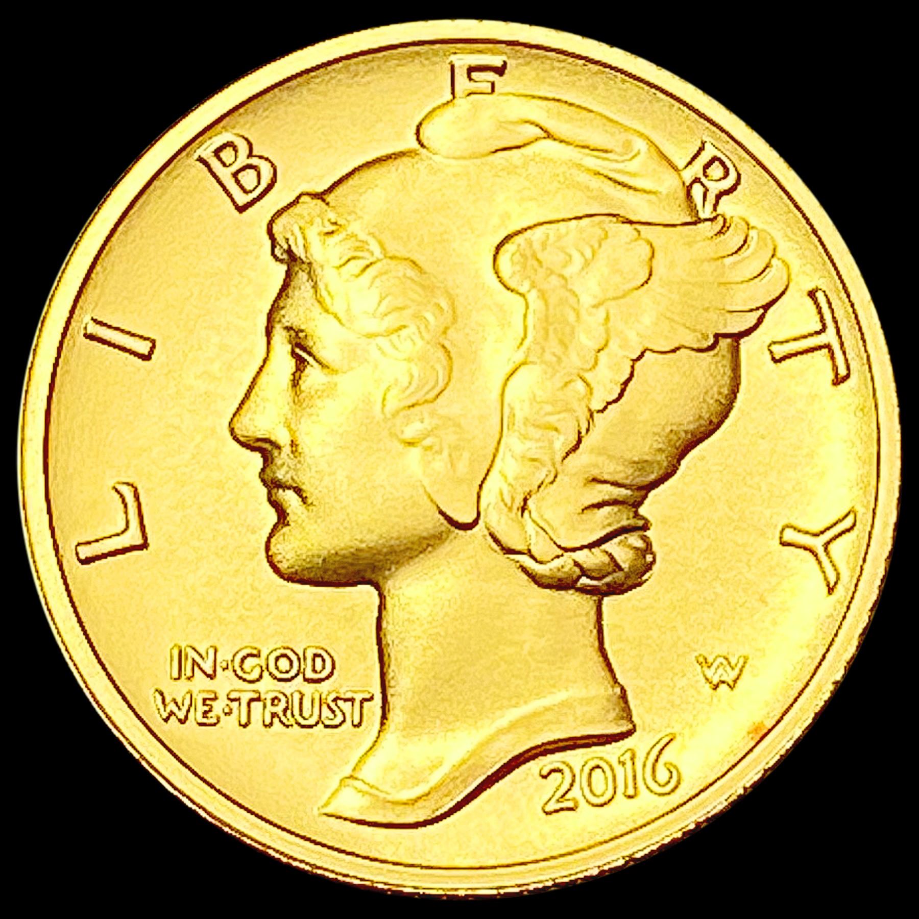 2016-W 1/10th oz Gold Mercury Dime SUPERB GEM BU