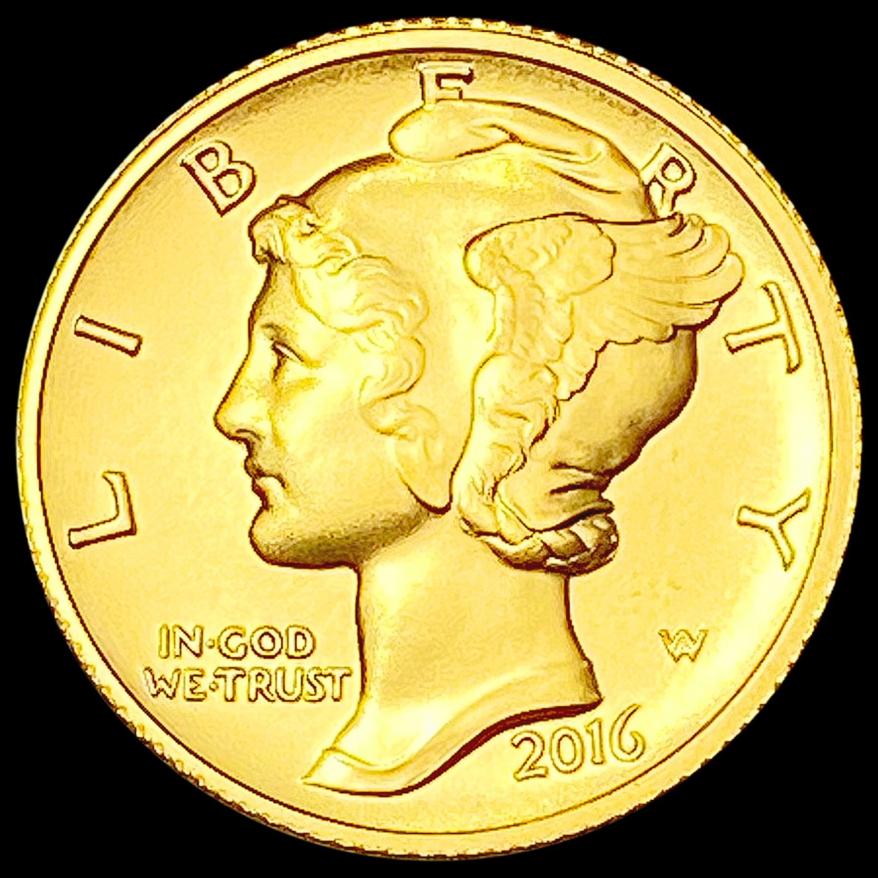 2016-W 1/10th oz Gold Mercury Dime SUPERB GEM BU