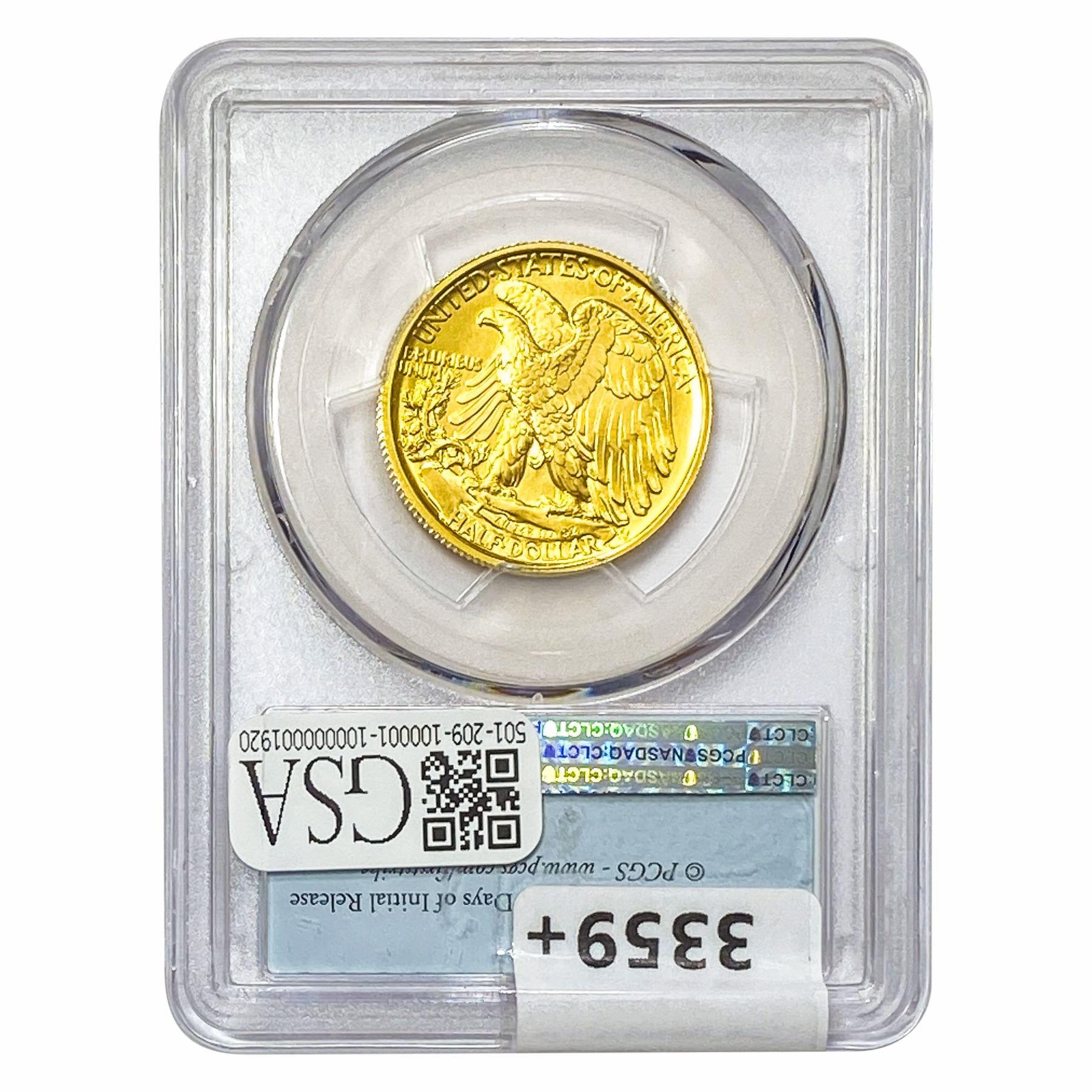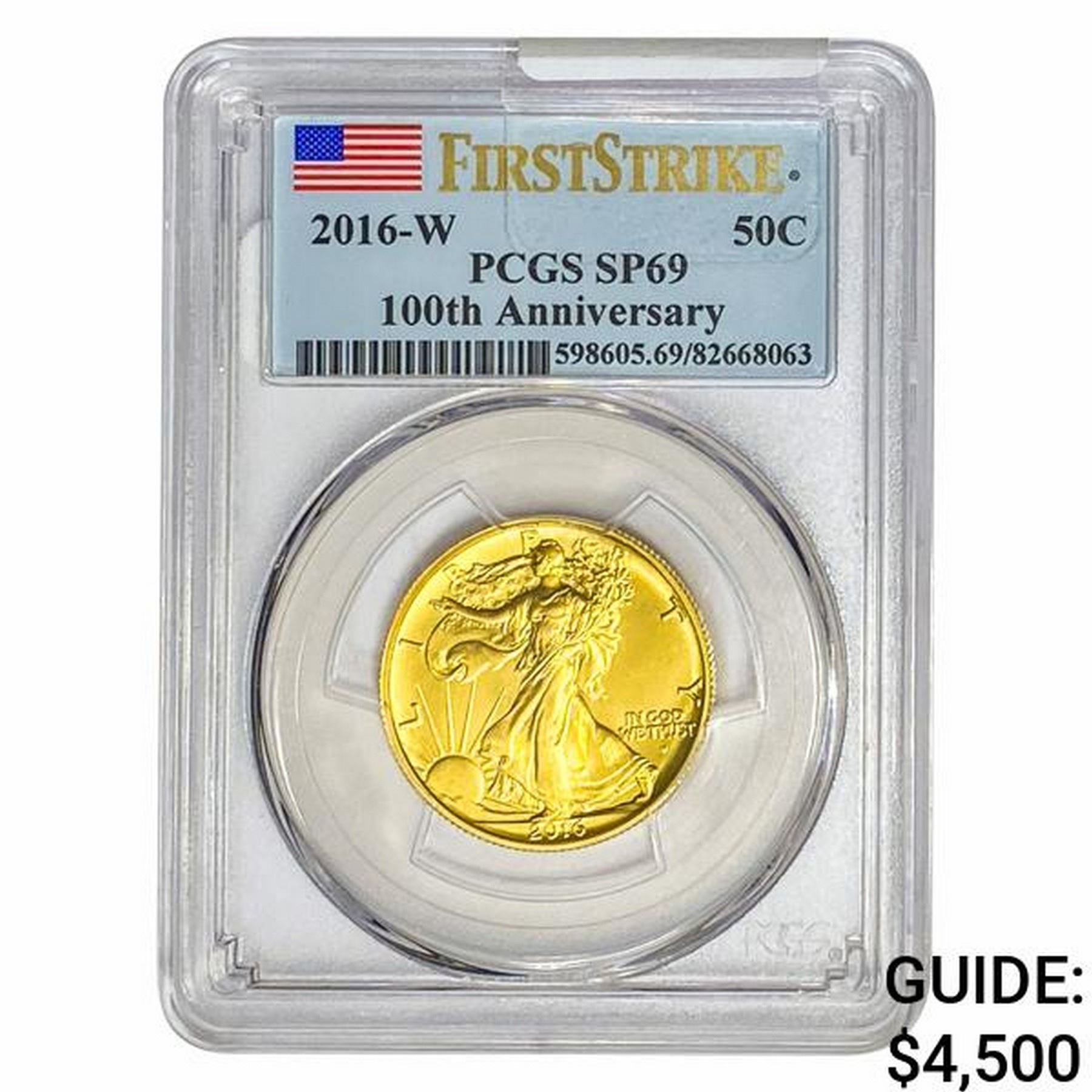 2016-W 1/2oz Gold 50C 100th ANNIV. PCGS SP69