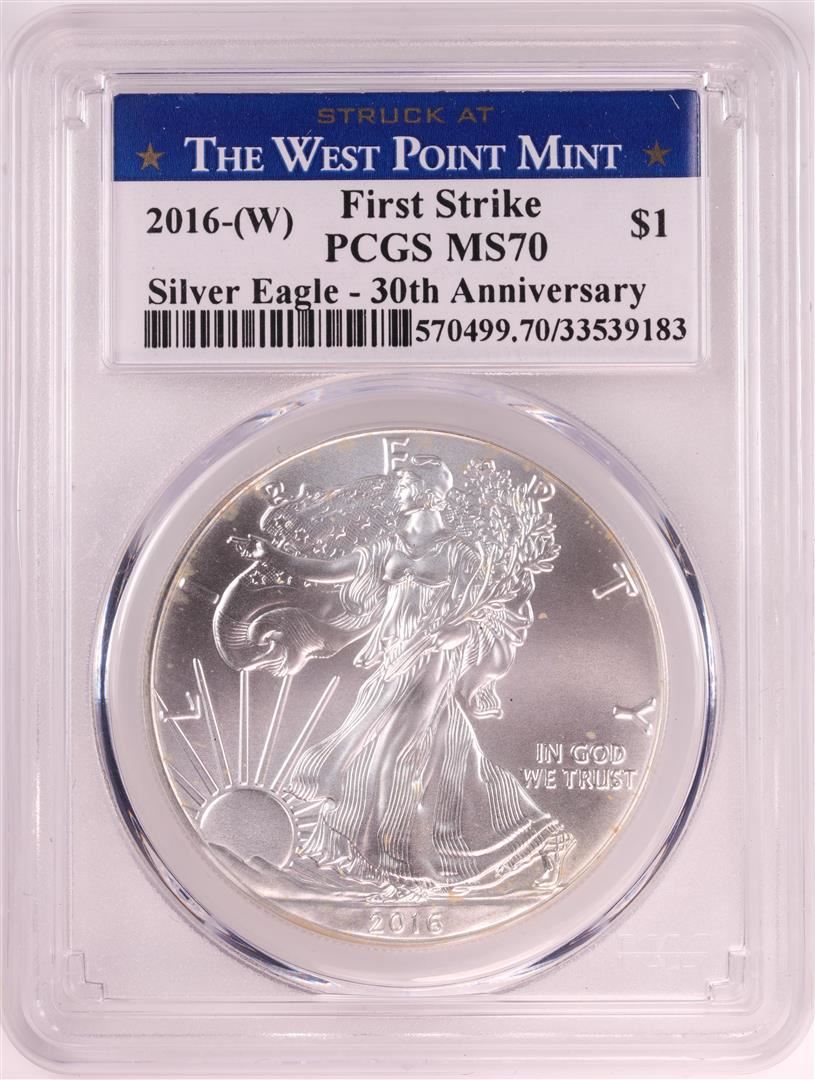 One 2016-(W) $1 American Silver Eagle Coin PCGS MS70 First Strike West Point Mint. PCGS Graded.