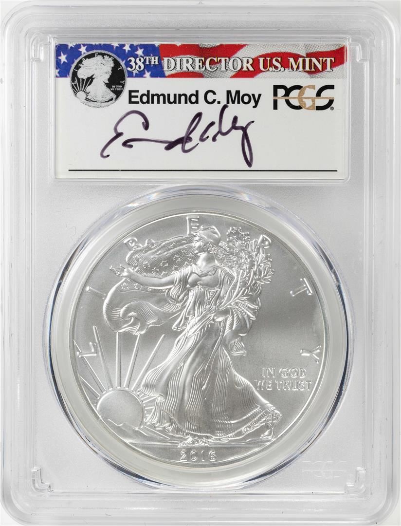 One 2016-W $1 Burnished American Silver Eagle Coin PCGS SP70 First Strike Moy Signature. PCGS Graded.