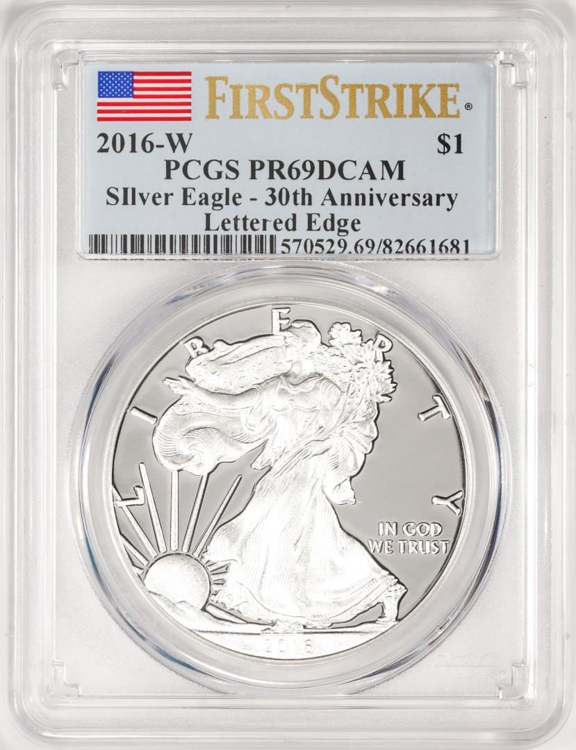 2016-W $1 Lettered Edge Proof American Silver Eagle Coin PCGS PR69DCAM First Strike
