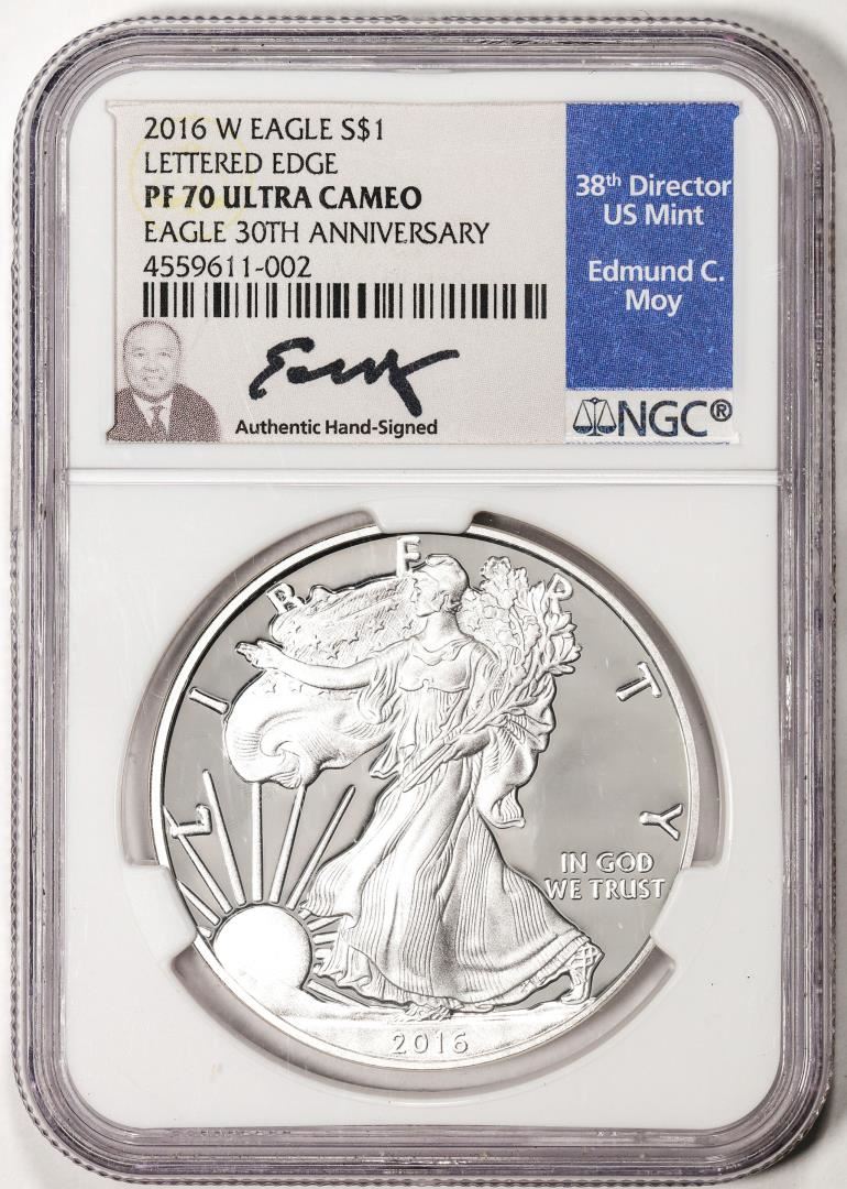 2016-W $1 Proof American Silver Eagle Coin NGC PF70 Ultra Cameo Edmund Moy Signature