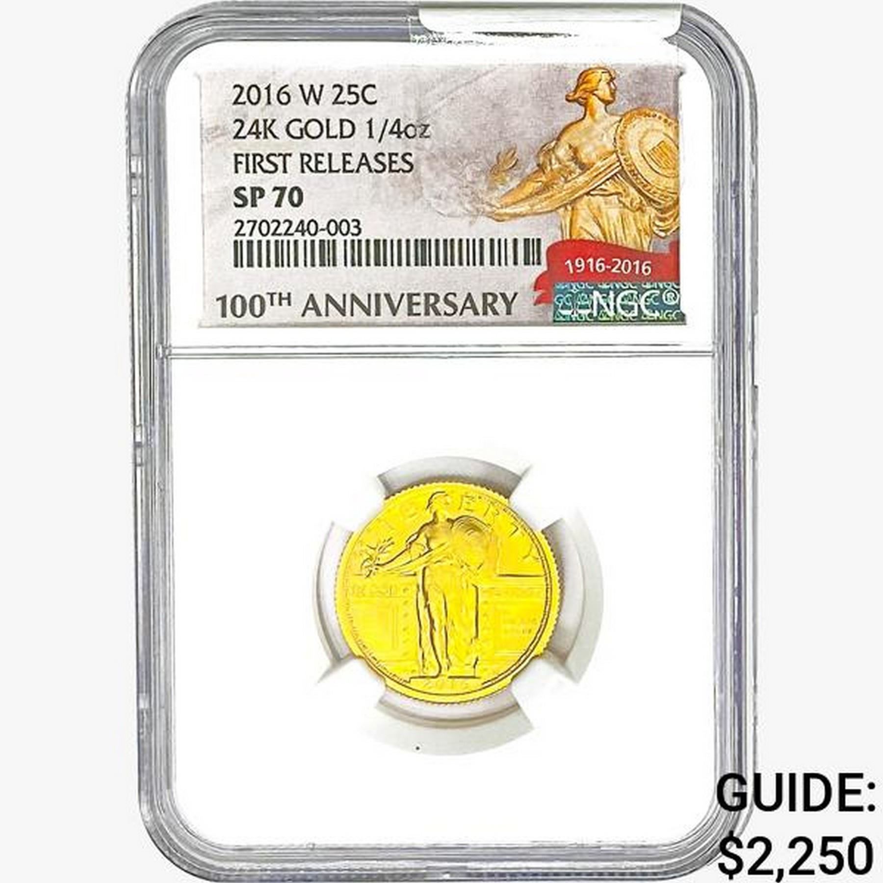 2016-W 24K 1/4oz Gold 25C Stnd. Lib. NGC SP70 FR