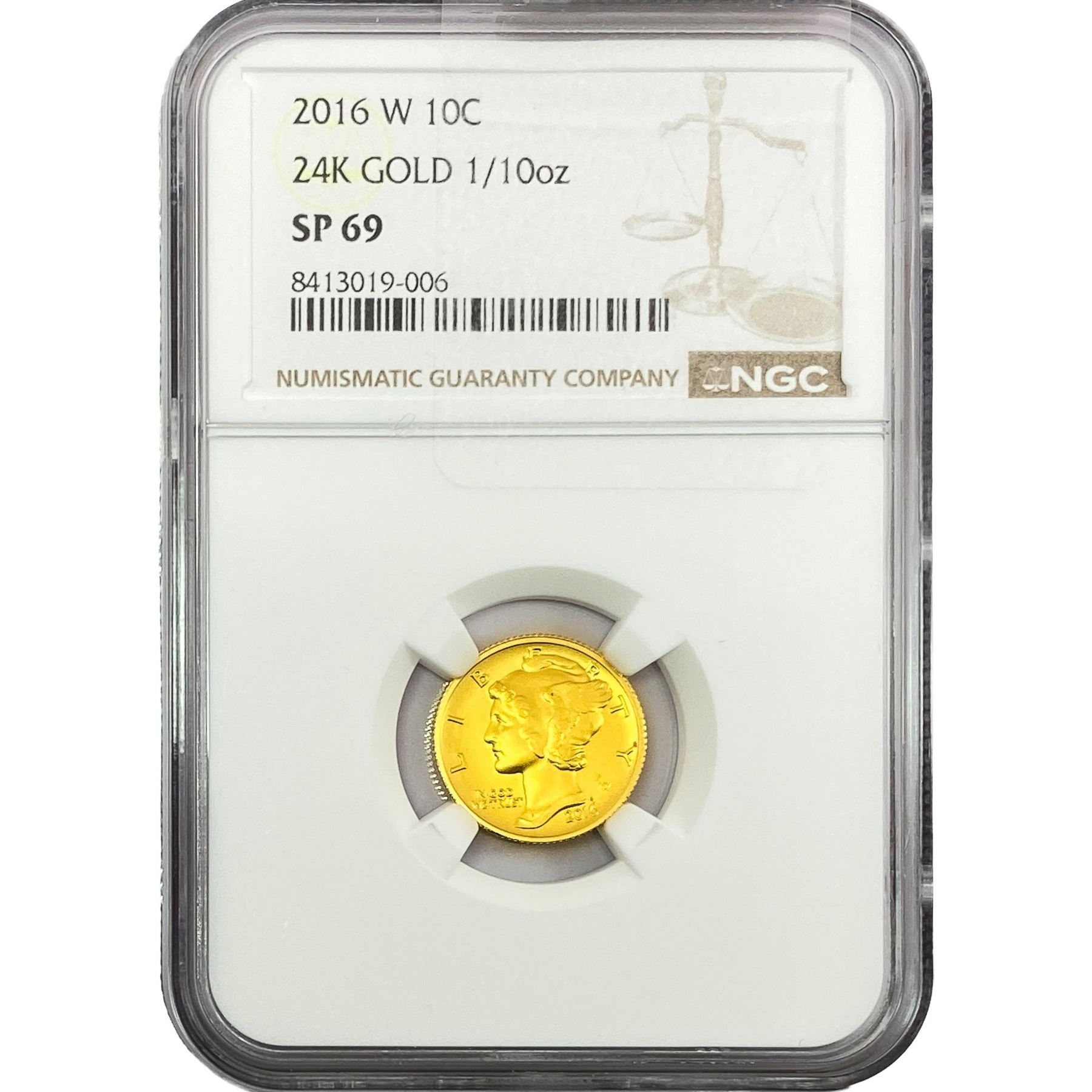 2016-W 24k 1/10oz Gold Mercury Dime NGC SP69
