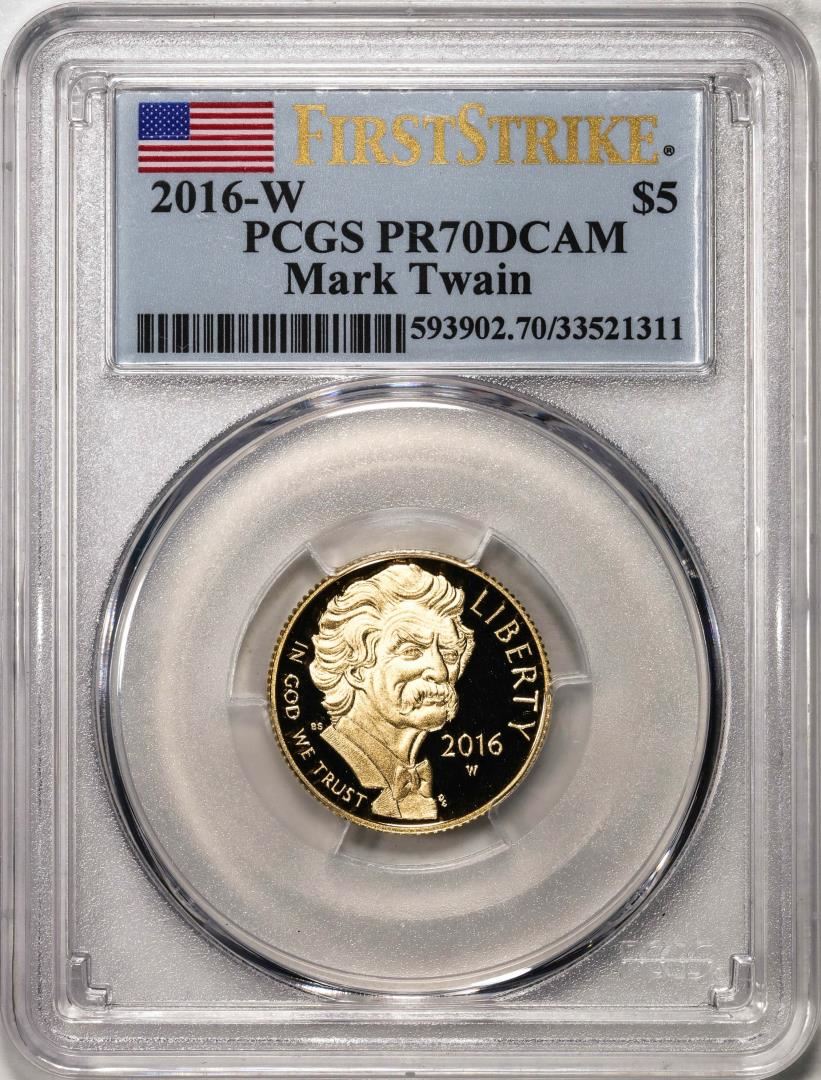 2016-W $5 Mark Twain Commemorative Gold Coin PCGS PR70DCAM First Strike
