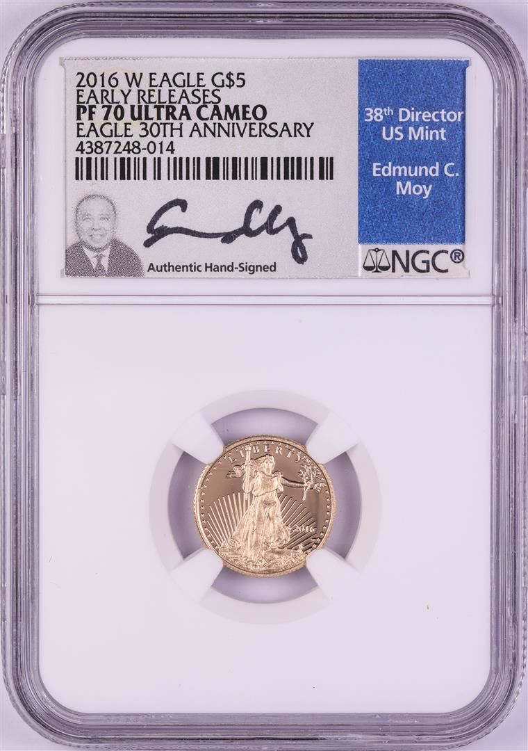 2016-W $5 Proof American Gold Eagle Coin NGC PF70 Ultra Cameo Edmund Moy Signature