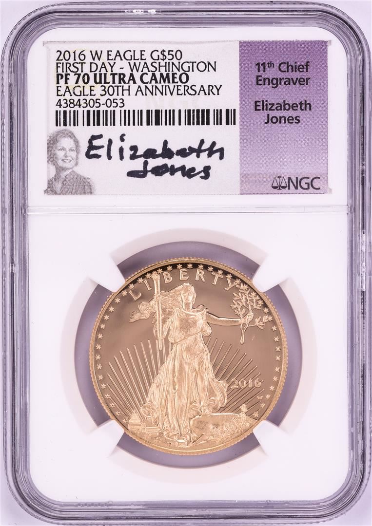 One 2016-W $50 Proof American Gold Eagle Coin NGC PF70 Ultra Cameo FDOI Jones Signature. NGC Certified.
