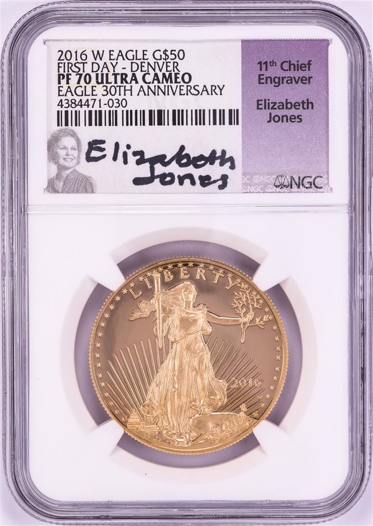 One 2016-W $50 Proof American Gold Eagle Coin NGC PF70 Ultra Cameo FDOI Jones Signature. NGC Certified.