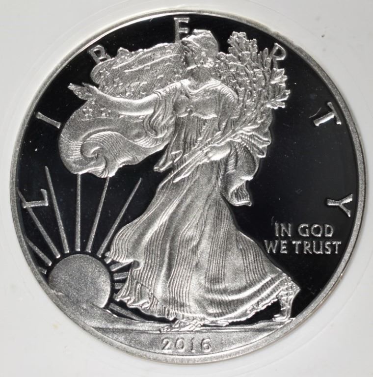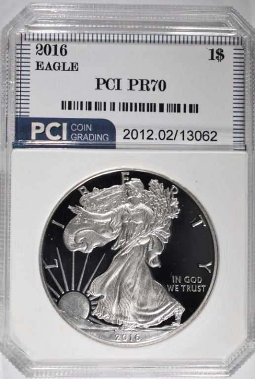 2016-W AM. SILVER EAGLE, PCI PERFECT GEM PROOF ESTIMATE $35 - $45.