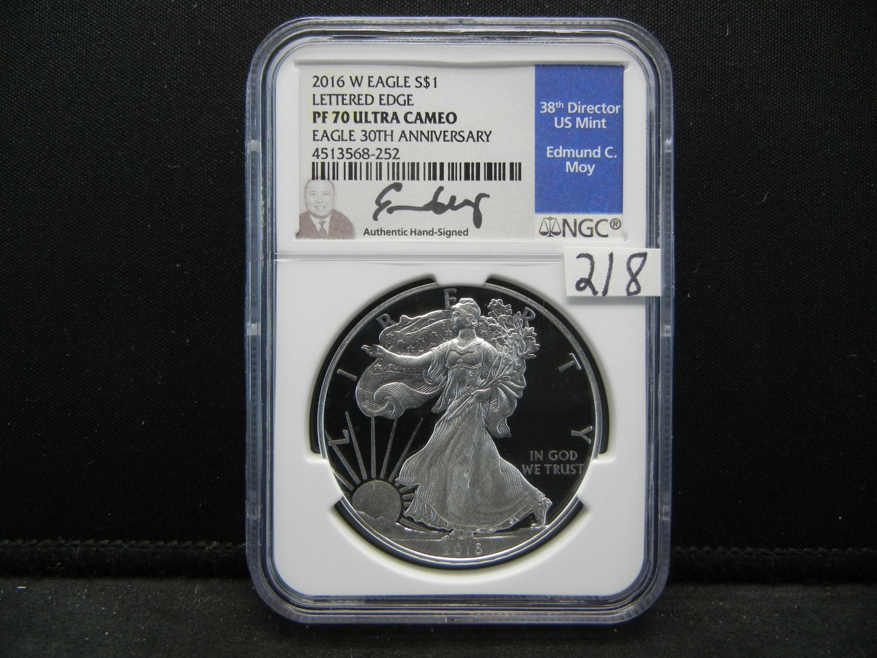2016 W Amercian Silver Eagle Lettered Edge NGC PF70 Ultra Cameo Edmund Moy Signature