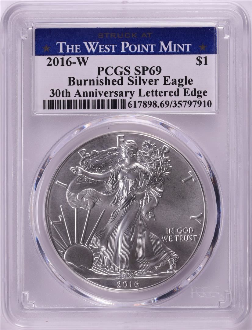 2016-W Lettered Edge $1 Burnished American Silver Eagle Coin PCGS SP69 West Point