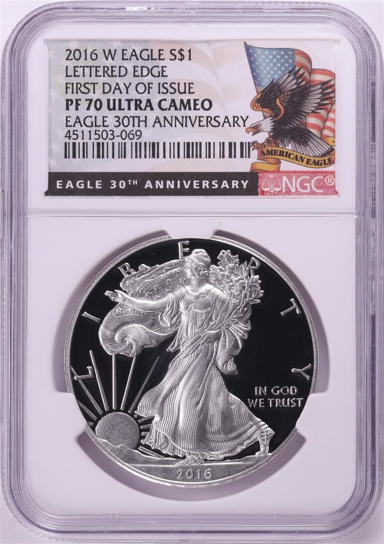 2016-W Lettered Edge $1 Proof American Silver Eagle Coin NGC PF70 Ultra Cameo FDOI