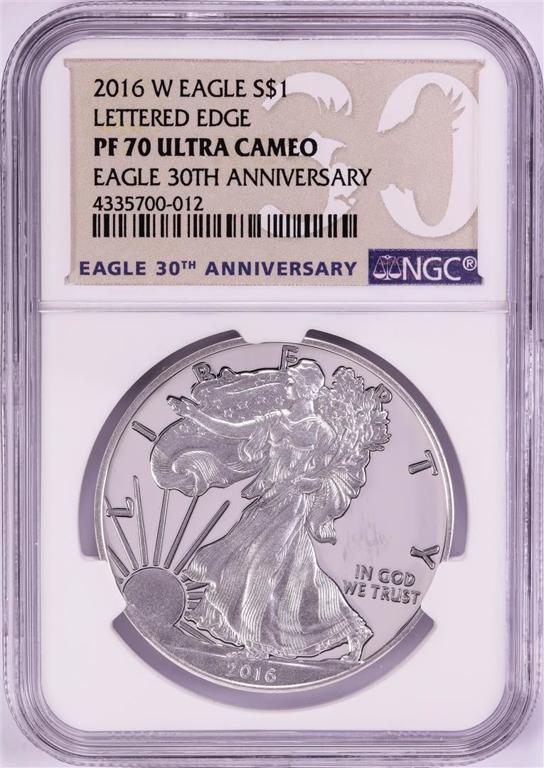 2016-W Lettered Edge $1 Proof American Silver Eagle Coin NGC PF70 Ultra Cameo
