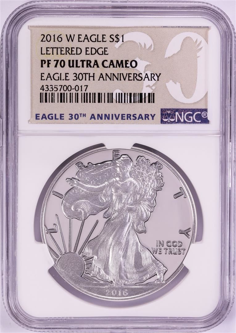 2016-W Lettered Edge $1 Proof American Silver Eagle Coin NGC PF70 Ultra Cameo
