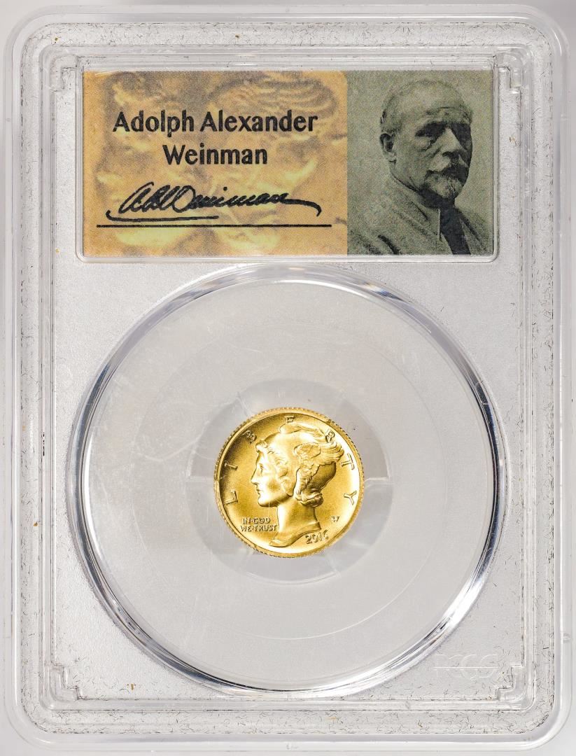 2016-W Mercury Dime Centennial Commemorative Gold Coin PCGS SP70 FDOI Weinman Sig