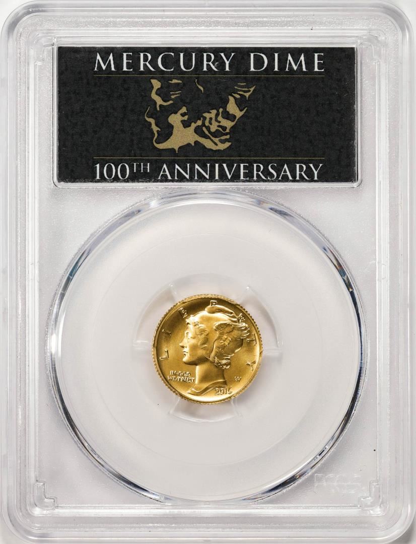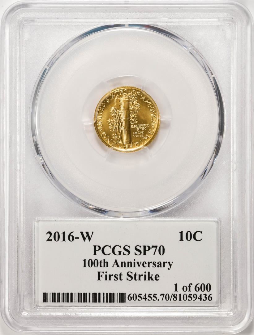 2016-W Mercury Dime Centennial Commemorative Gold Coin PCGS SP70 First Strike