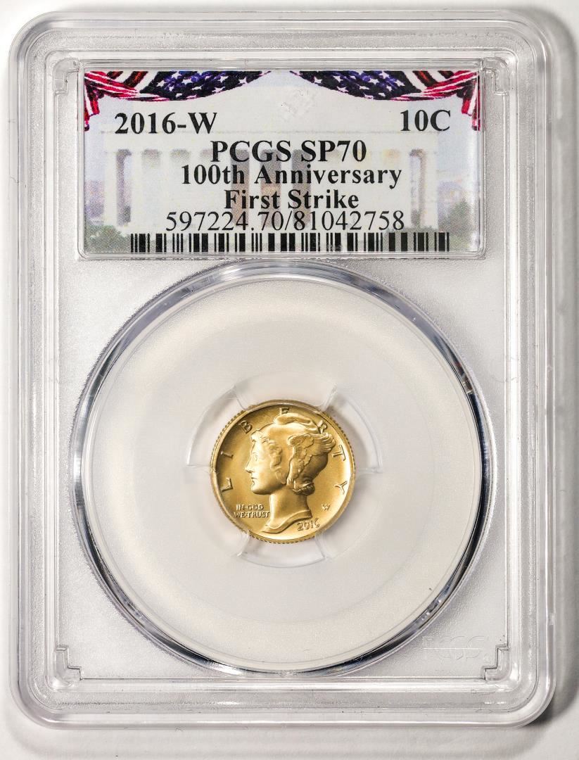 2016-W Mercury Dime Centennial Commemorative Gold Coin PCGS SP70 First Strike