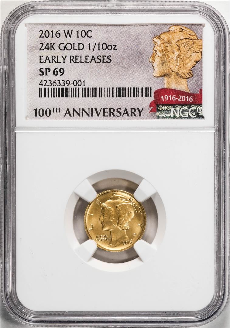 2016-W Mercury Dime Gold Centennial Commemorative Coin NGC SP69 Early Releases