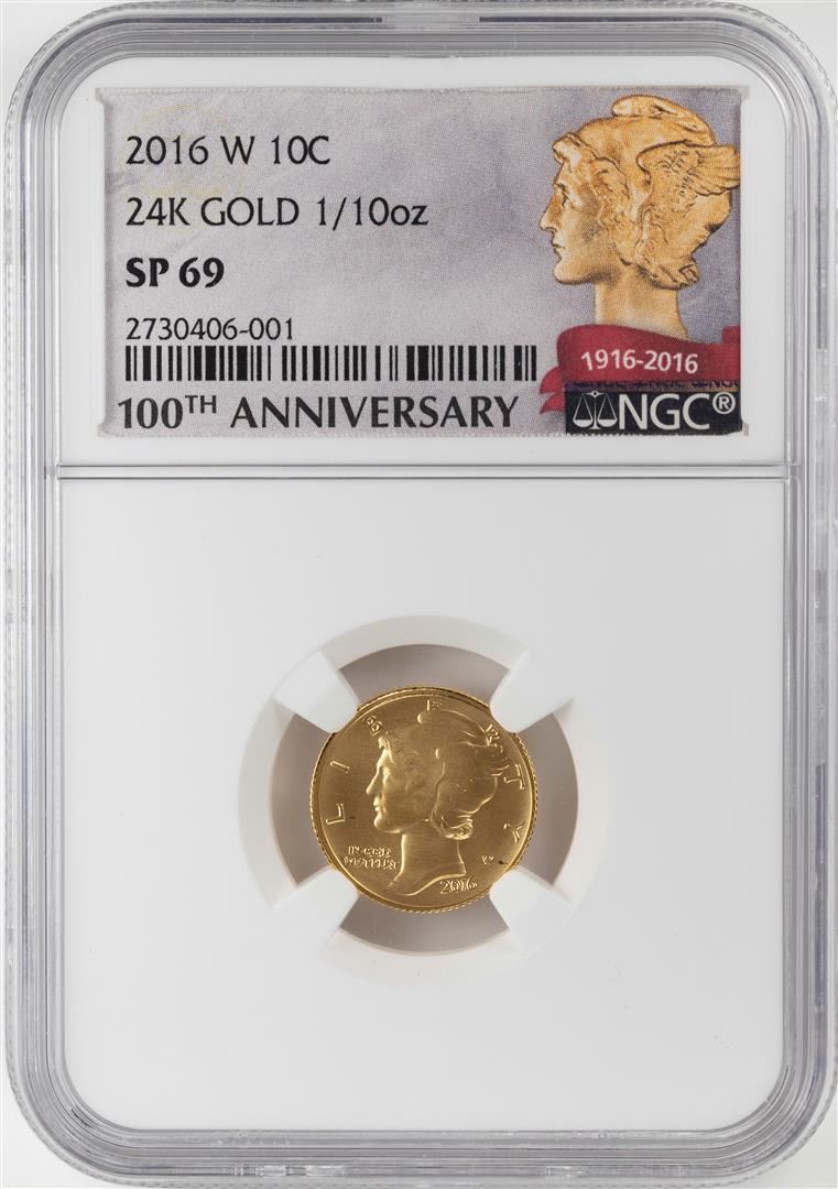 2016-W Mercury Dime Gold Centennial Commemorative Coin NGC SP69