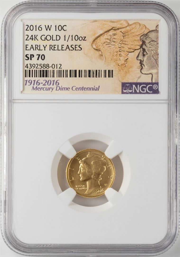 2016-W Mercury Dime Gold Centennial Commemorative Coin NGC SP70 Early Releases