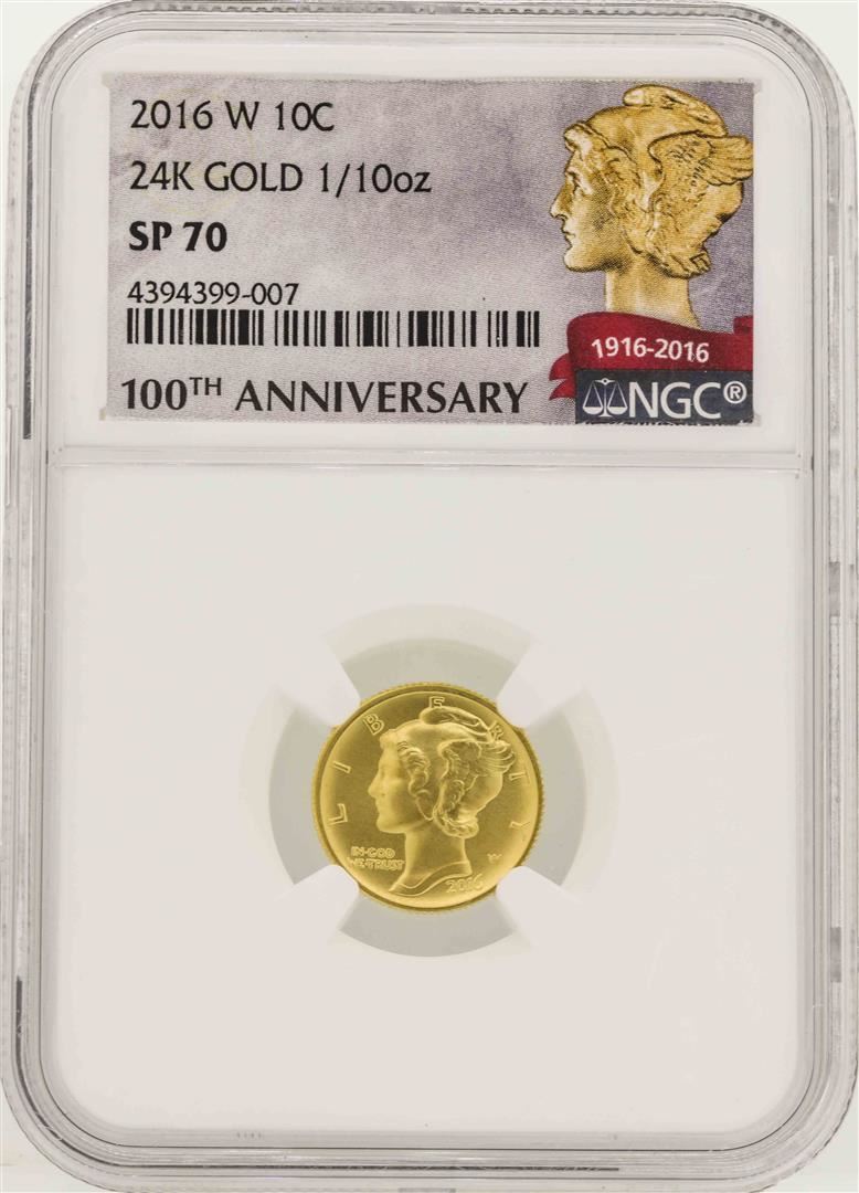 2016-W Mercury Dime Gold Centennial Commemorative Coin NGC SP70 First Release