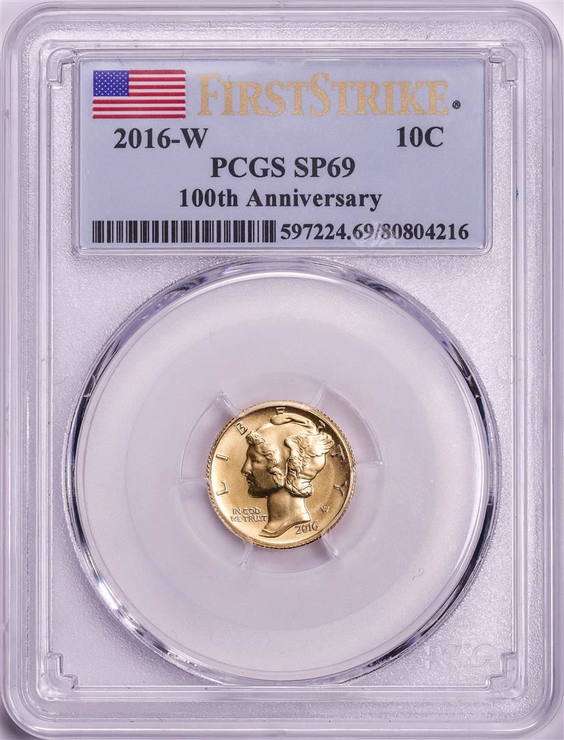 2016-W Mercury Dime Gold Centennial Commemorative Coin PCGS SP69 First Strike