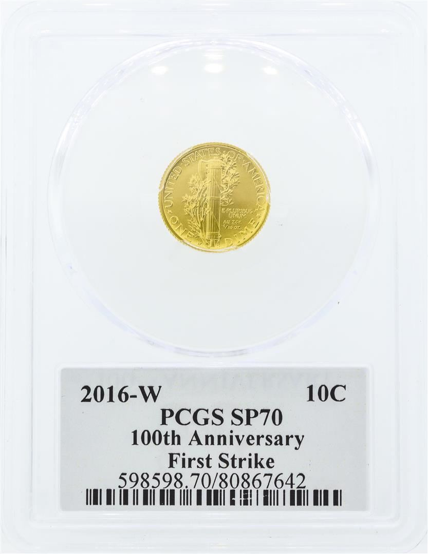 One 2016-W Mercury Dime Gold Centennial Commemorative Coin PCGS SP70 First Strike. PCGS Graded.