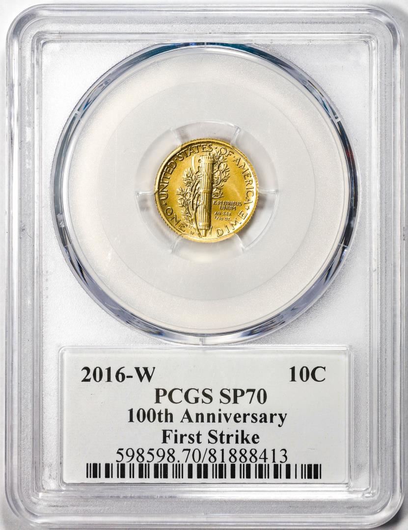 2016-W Mercury Dime Gold Centennial Commemorative Coin PCGS SP70 First Strike