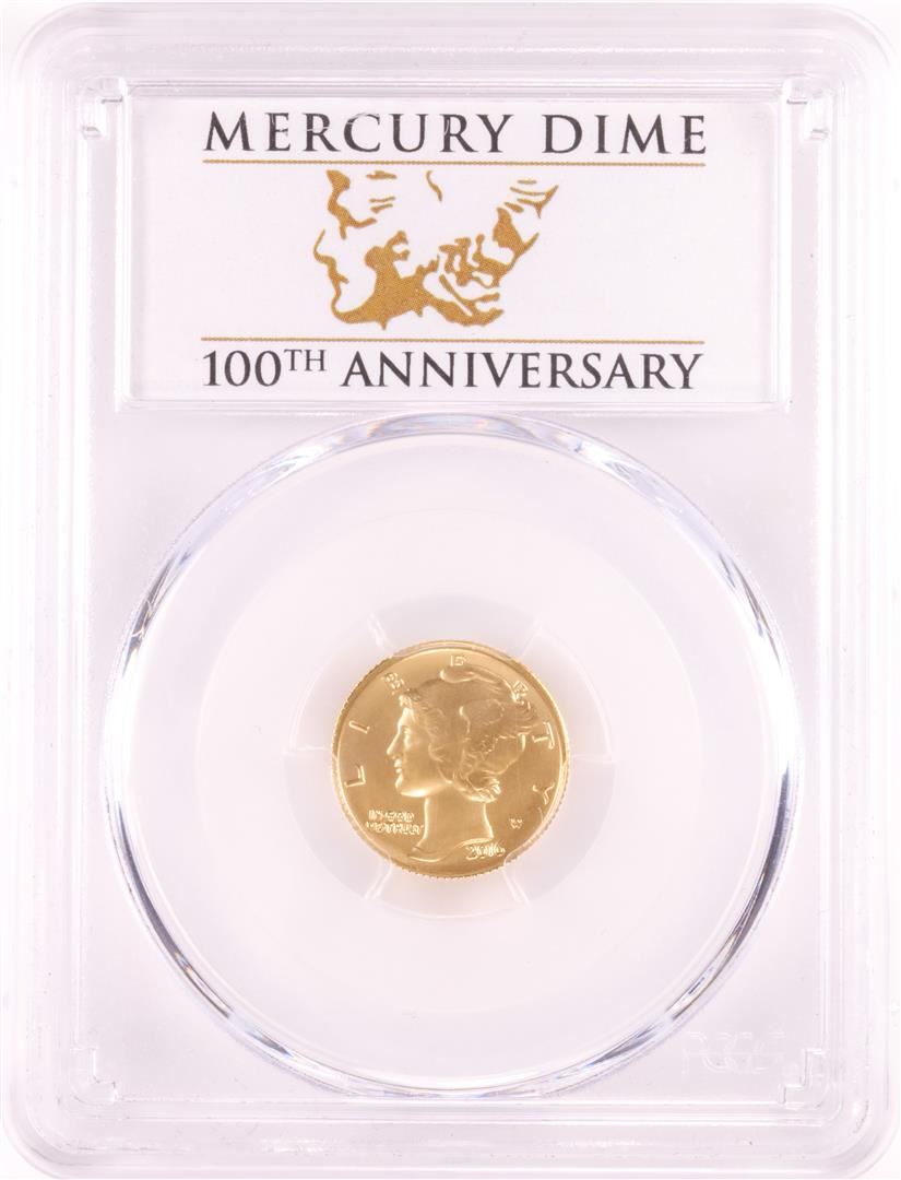 One 2016-W Mercury Dime Gold Coin PCGS SP70 100th Anniversary First Strike. PCGS Graded.