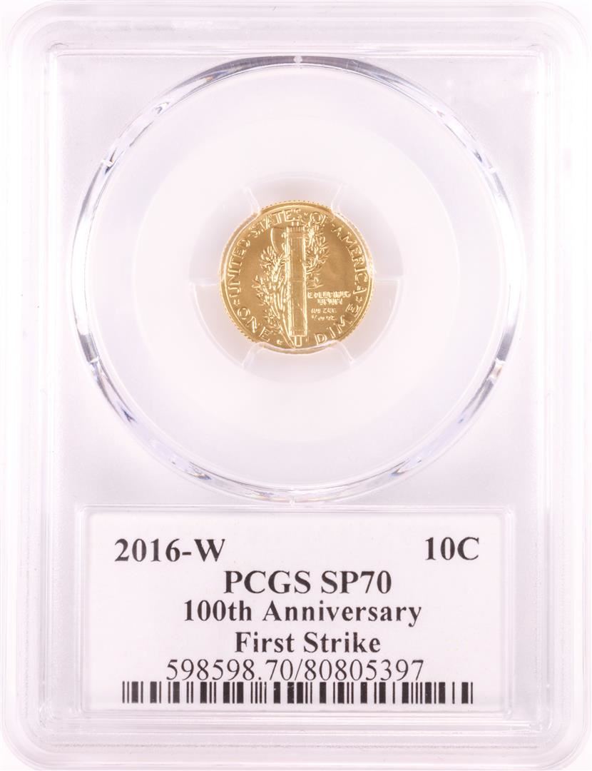 One 2016-W Mercury Dime Gold Coin PCGS SP70 100th Anniversary First Strike. PCGS Graded.