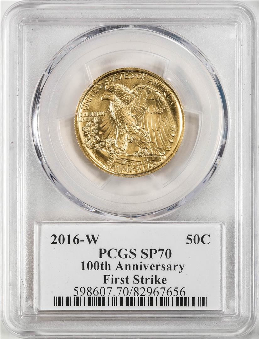 One 2016-W Walking Liberty Half Dollar Commemorative Gold Coin PCGS SP70 First Strike. PCGS Graded.