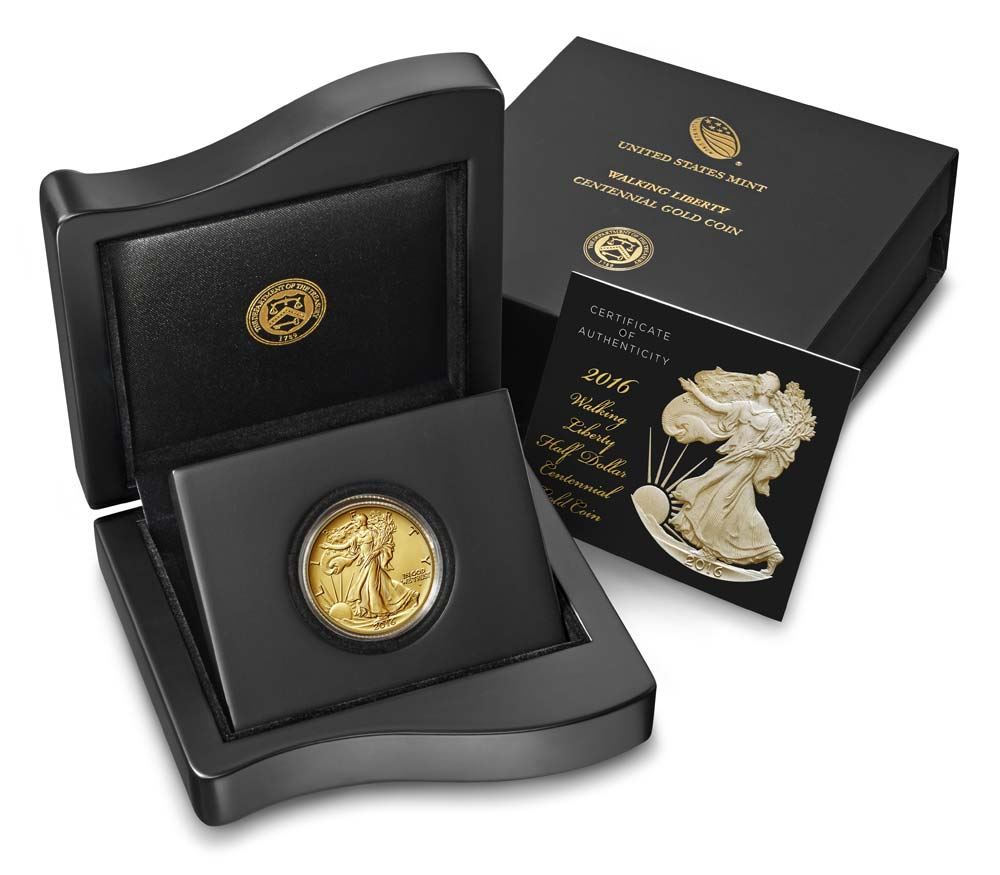 2016-W Walking Liberty Half Dollar Gold Centennial Commemorative Coin with Box/C