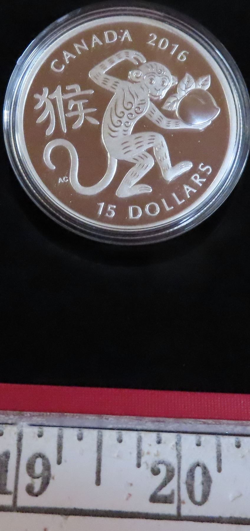 2016 Year of the Monkey Zodiac $15. 99.99% pure Silver. Proof with Ultra Heavy Cameo. Housed in its original RCM case & box of issue.