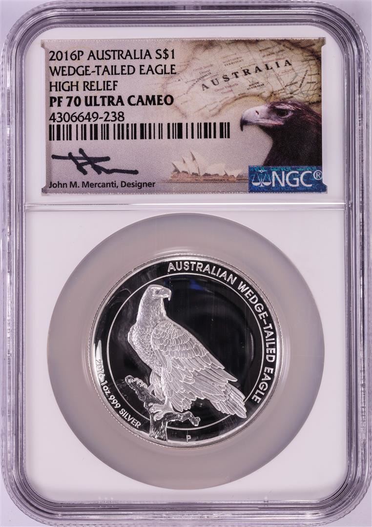 2016P High Relief $1 Australian Eagle Silver Coin NGC PF70 Ultra Cameo Mercanti Signed