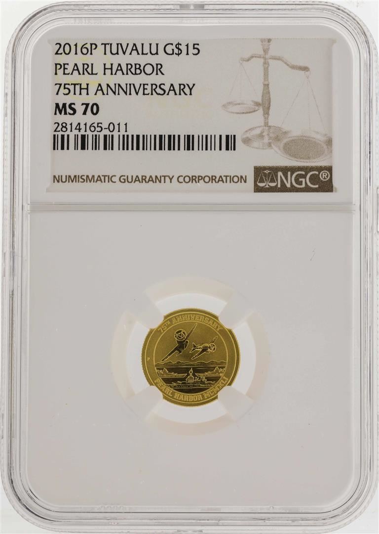 One 2016P Tuvalu $15 Pearl Harbor Gold Coin 75th Anniversary NGC MS70. NGC Certified.